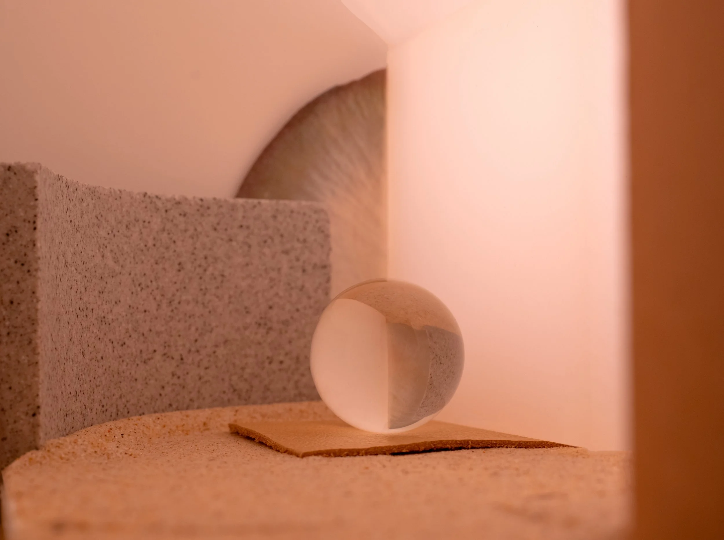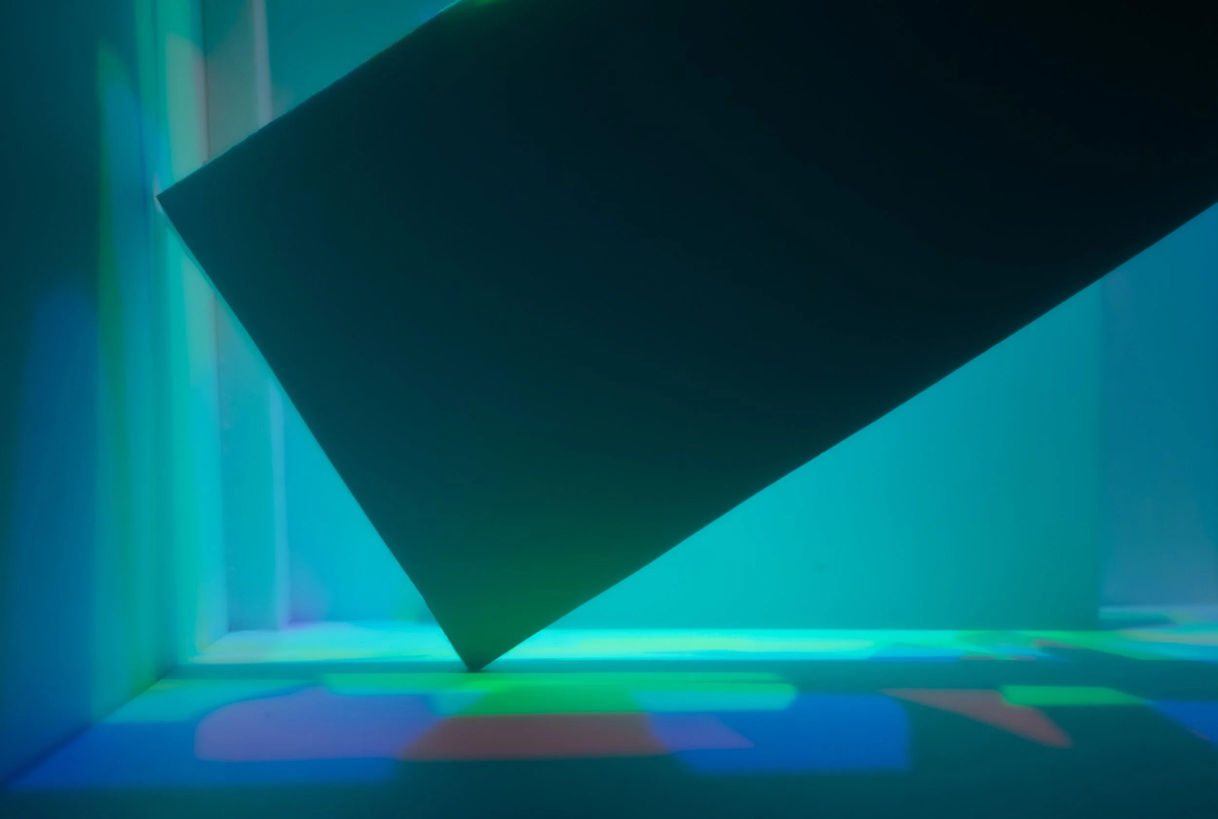 The resulting series of photographs occupy a space between representation and ambiguity, working on a psycho-geographical level. A series of dioramic models was constructed using found and recycled materials. Acting as the framework architecture, the employment of fragmented light, elemental geometries, and strict chromatic systems were used strategically. These material interventions transform the ordinary, elevating the mundane into compositions that ambiguously refer to a mystical, occult sanctum.